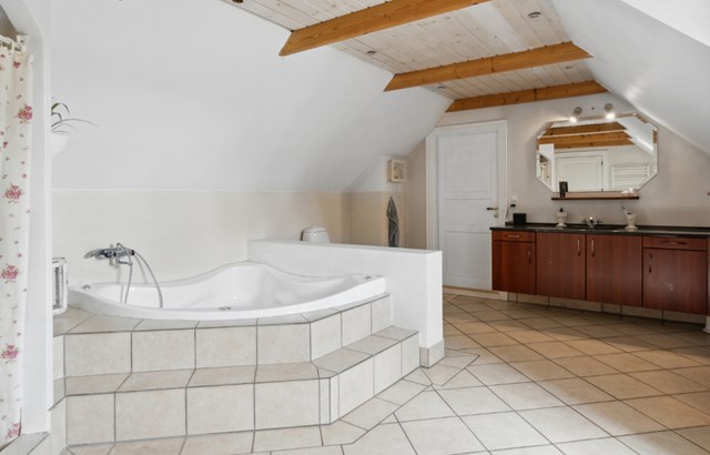 På 1.sal er der stort flot badeværelse med spa, samt 3 værelser.