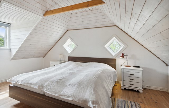 Skøn beboelse indrettet i 1 ½ plan med bjælkelofter i de fleste rum.