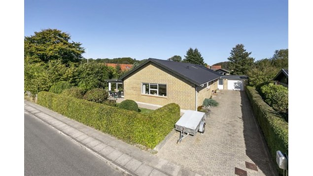 Villaen på 174 m² fra 1970 ligger på en 926 m² opvokset grund og giver ved første møde et solidt indtryk med gulmursten, garage og en lang indkørsel med plads til flere biler.