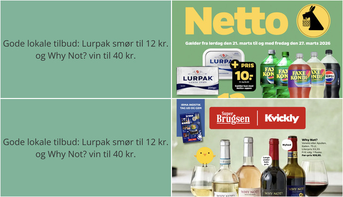 Vi har kigget på denne uges tilbudsaviser for dagligvarebutikker i Vrå og fundet nogle fantastiske tilbud. Her er et udpluk af de bedste tilbud fra Netto og SuperBrugsen/Kvickly.