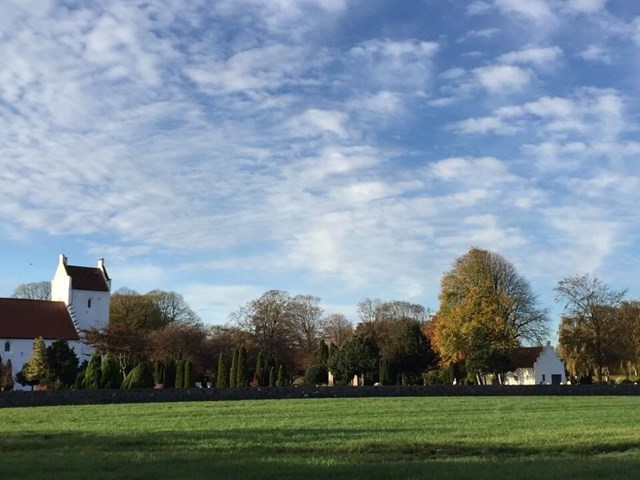 Foto: Vrejlev Klosterkirke fra omkring 1200-tallet, mens klokken er fra 1400-tallet.