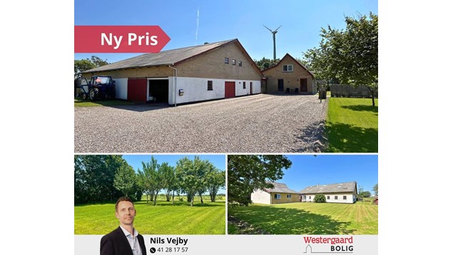 Prisnedsat landejendom med egen vindmølle og 1,5 ha jord til salg