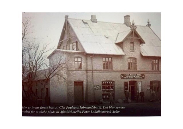 Banens arkitekt Kruse havde næse for en god forretning, og han byggede en købmandshandel ved trinbrættet. Han fik den hurtigt lejet ud til købmand A. Chr. Poulsen, der efterhånden opkøbte det jordstykke, der nu er Jernbanegade.