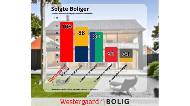 Hos Westergaard Bolig sælger vi langt de fleste ejendomme i Brønderslev og omegn - faktisk hele 18 ejendomme mere end nr. 2.
