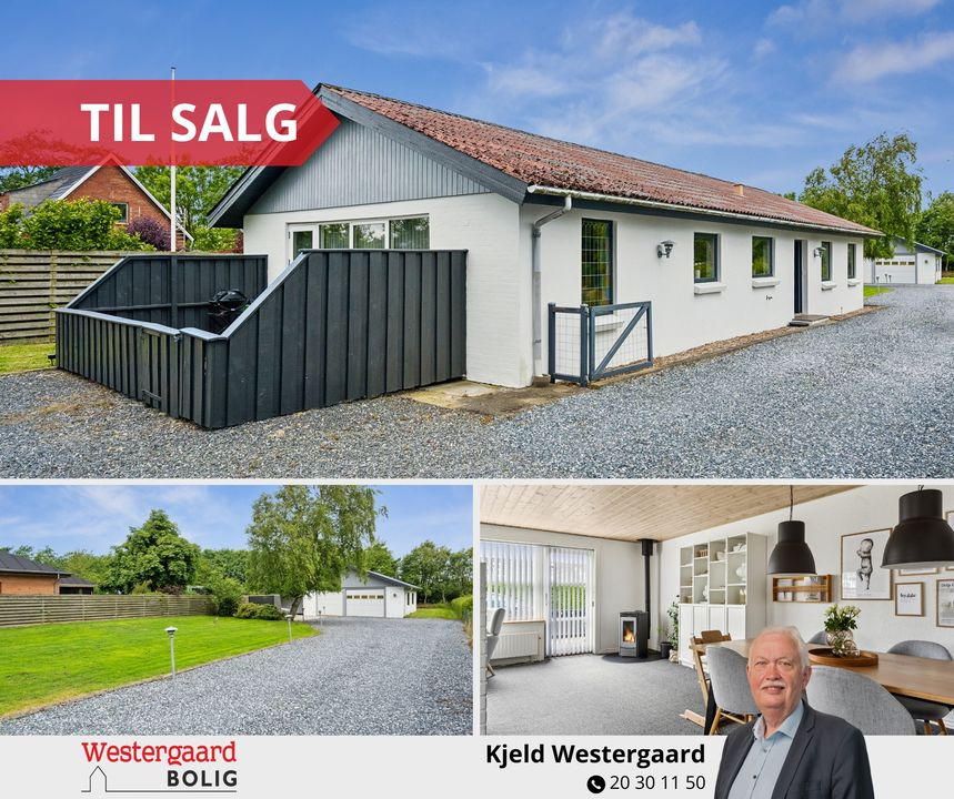 Denne nymoderniserede villa har fået nyt badeværelse, delvist nye vinduer og nyt tag på garagen. Garagen er isoleret og med sine 𝗵𝗲𝗹𝗲 𝟵𝟲 𝗺𝟮 er den perfekt til alle hobbyprojekterne.